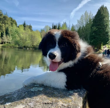 Puppy kit (saco de comida, arnés con cinturón de seguridad, correa, juguete y una manta con el olor de su madre).